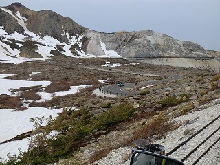 ジグザグ道の先に噴火口が見えるみたいだけど、今回はパス