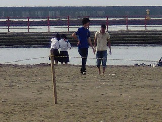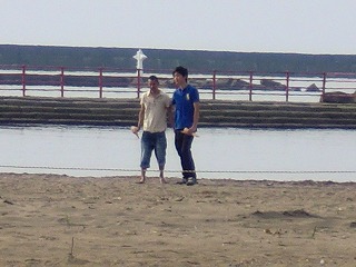海辺でマッタリしていたらクレープを手にした若者二人を発見
