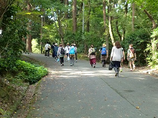 )公園内の野外ステージまで、10分ほど坂道を登ります。