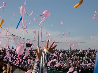 何回かプロ野球観戦に行ったことがありますが、風船を飛ばすのは初めて!