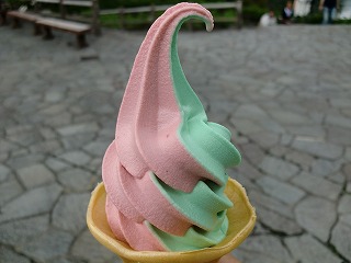 五色沼とイチゴのミックスソフト。