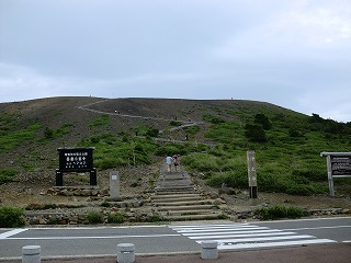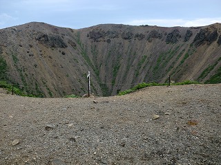 立ち入り禁止のロープの先は噴火口が望めます。
