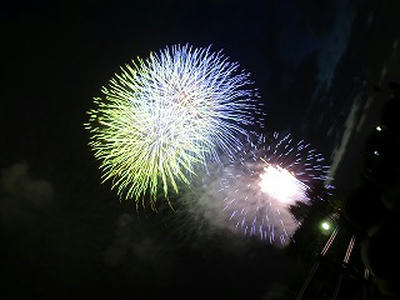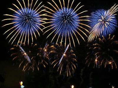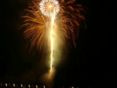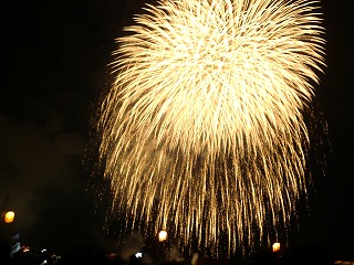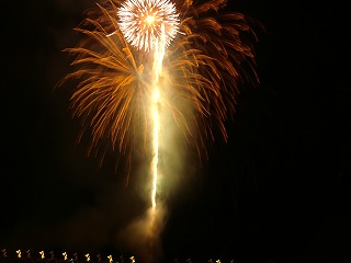 大河ドラマ「天地人」のオープニング曲に合わせて打ち上がる目玉花火の一つ。